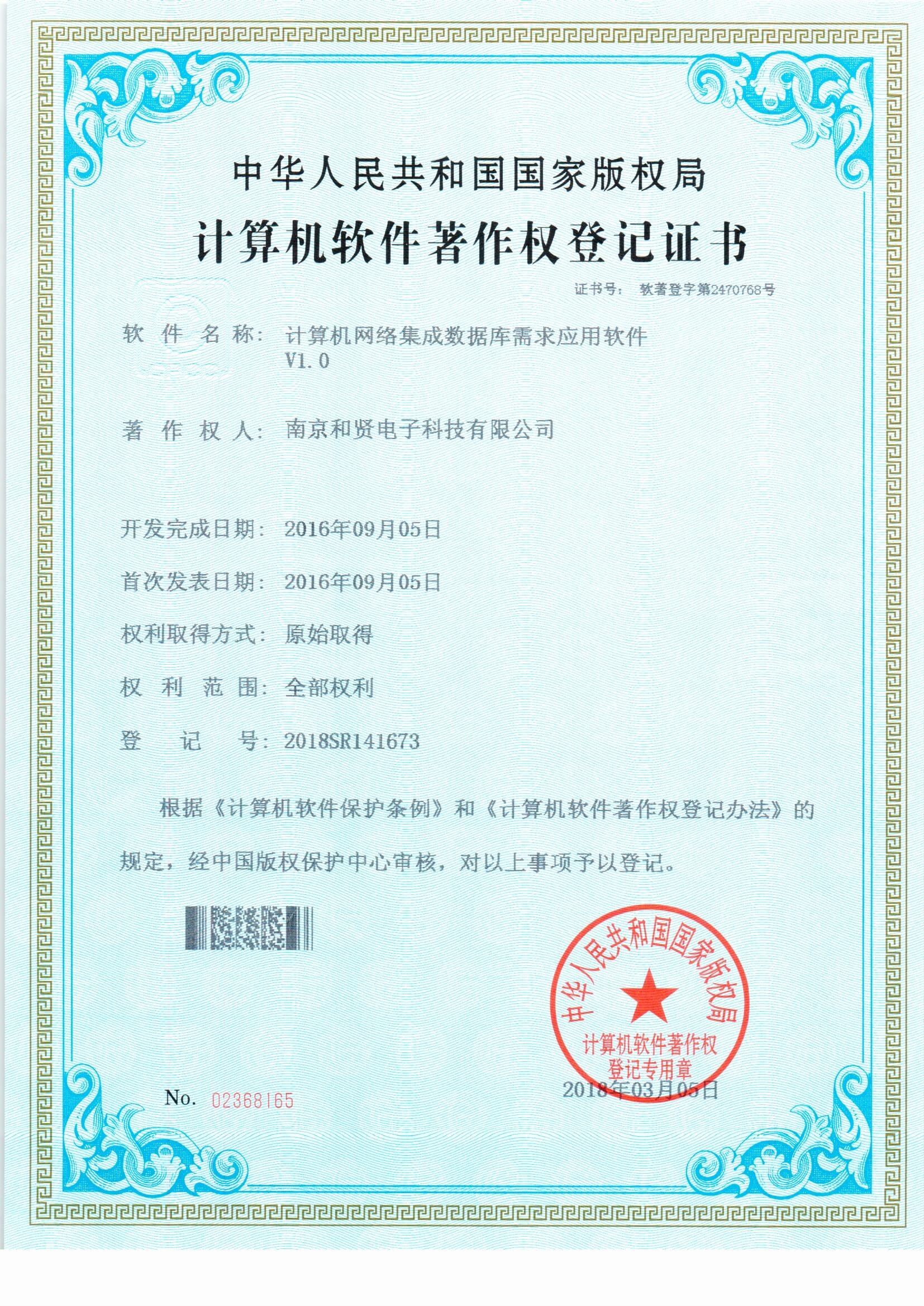 计算机信息系统集成及服务肆级资质 2016年7月